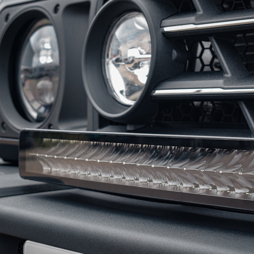DESIGNED BY STEALTH Designed using sophisticated CAD and 3D scanning software and fabricated in-house, our 30″ LED light Kit has been engineered to mount to existing points on the vehicle using bespoke mounting brackets and includes a step by step installation guide. Our 30″ Luminous Integration Kit for the INEOS Grenadier offers a perfect blend of functionality and aesthetic appeal, perfect for both commercial and personal use. Improving visibility and safety for night time driving, off road adventures and camping.