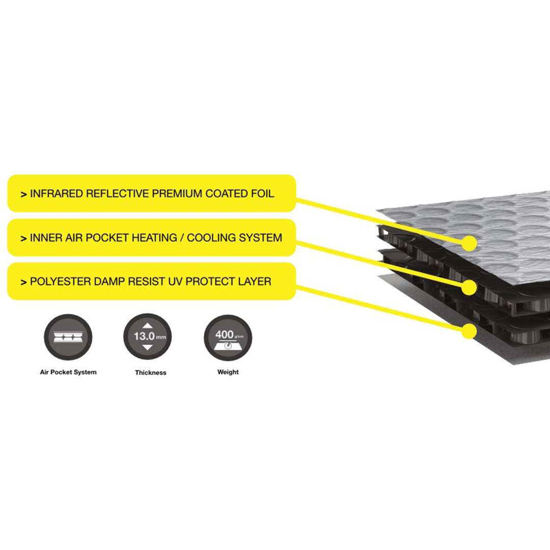 - Insulation: Keeps heat inside during Winter and outside during Summer